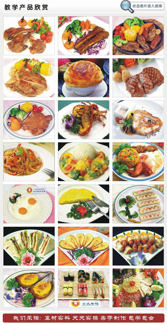实操品种:48款 头盘:蒜蓉烟肉焗带子 鲜虾多士 法国焗蜗牛 鸡肉多士球 烟肉焗生蚝 汤类:南瓜茸汤 美国薯菜汤 英式牛尾浓汤 沙律:厨师沙律 夏威尔鸡沙律 华尔道夫沙律 黑椒烧牛肉沙律 东南亚风味:摩啰鸡饭 印尼炒面 泰式菠萝炒饭 日式奄列饭 日式炒乌冬 海南鸡饭 日式寿司 新加坡培根卷 西式饭类:窝蛋牛肉饭 焗猪扒饭 葡国鸡焗饭 黑椒牛柳粒炒饭 西式主菜类:黑椒七骨羊仔扒 T骨牛扒 西冷牛扒 铁板牛仔骨 非洲辣鸡扒 泰式烤鸡 扒银雪鱼粟米 西班牙烩鱼 意式烩大虾 侯斯顿猪扒 牛仔歌顿堡 炸香蕉鸡卷 吉列猪扒 意粉类:芝士焗肉酱意粉 吞那鱼烩意粉 意大利海鲜螺旋面 米兰意粉 甜品:炸香蕉 火烧冰淇淋 美式苹果批 炸雪糕 水果拼盘 西式蔬菜:黑椒烤茄子 焗酿马铃薯
