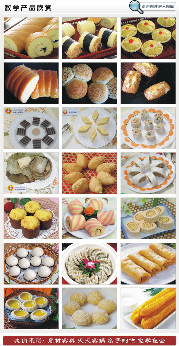 实操品种:48款 中点:双色蒸馒头 可口全麦包 甘笋流沙包 香滑奶黄包 蚝油叉烧包 传统糯米鸡 雪莲黑糯盏 鲜虾弯梳饺 百花香茜饺 鸡油马拉糕 果甫绿茶糕 安虾咸水角 时令南瓜饼 凉瓜汁煎饼 鲜虾蒸粉果 三丝炸春卷 蜂巢秋芋角 椰酱煎斑戟 吉列红豆包 薯茸牛利酥 营养咸香饼 肉甫绿豆凸 家乡老婆饼 鲜奶梳乎角 西点:巧克力炸包 热狗面包 丹麦牛角包 意大利牛肉面包 毛毛虫面包 戚风面蛋卷 蜂巢蛋糕 绿茶布丁面包 咸味葱花蛋糕 棋格蛋糕 虎纹双色蛋糕 香薯蛋糕 香葱蛋皮卷 寿司蛋糕 美式香葱蛋糕 金麦蛋糕 蛋黄小西饼 马赛克饼干 椰子薄饼 葡式蛋挞 千层蛋黄酥 比利时蝴蝶酥 水果泡芙 意大利花生脆饼