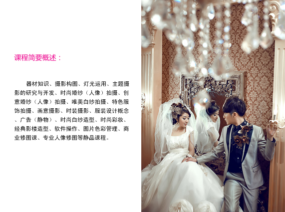 :适合无基础与希望全面提升、想从事影楼多方面工作或独立经营婚纱影楼的学员。