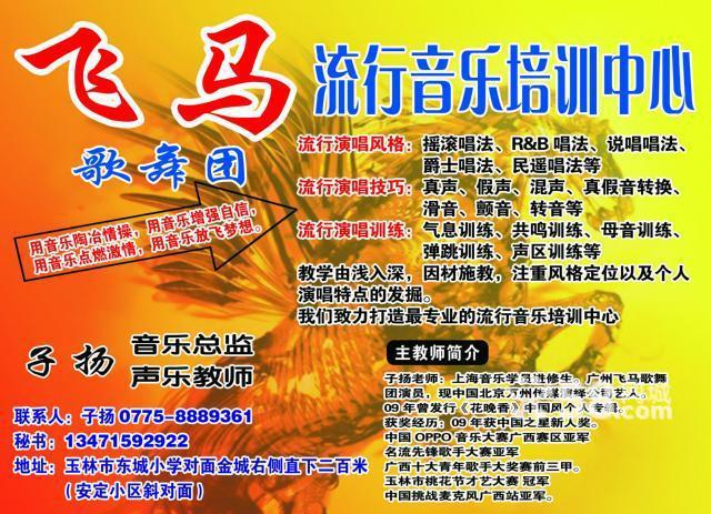 子扬声乐培训中心由玉林知名歌手,玉林师范学院艺术系外聘音乐讲师,子扬老师所创办,多年来,倾心打造品牌,规模日渐扩大,集中器乐、声乐、语言艺术、录音棚,音乐师资等文化艺术培训为一体。