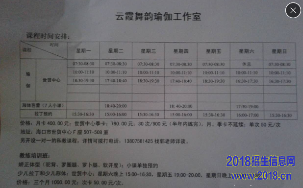 海南云霞舞韵瑜伽工作室,资深芭蕾舞、瑜伽老师郭云霞多年来结合芭蕾以及瑜伽的精髓,自创一些独特的瑜伽教学,对形体的塑造上多有经验,在享受瑜伽过程的同时通过正确的方法矫正保养形体的缺陷。其丈夫为韩国资深拉丁老师,专注拉丁多年,教学经验丰富。