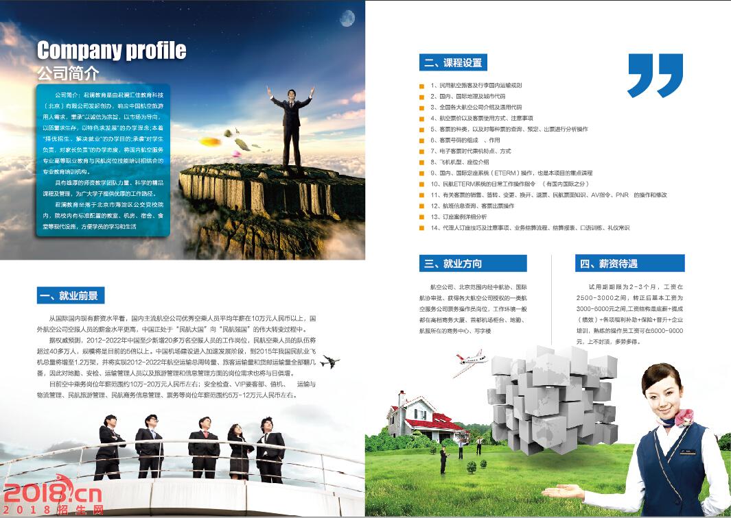 君澜汇佳航空票务培训机构2016培训正式开始招收学员(滚动式教学,随来随学,通过考核就分配工作)1.票务工作特点:岗位好,不吃青春饭,工作环境好,待遇好,前景好,工作年限越长工作经验越丰富,越受企业青睐,薪资待遇越高。2.培训项目:国内机票票务员,国际机票票务员3.培训内容:国际,国内机场代码,航空票务准用系统,eTerm3系统操作实际培训,常用办公软件培训,机票B2B电商平台实际操作培训,航空票务客服基本专业礼仪及术语,机票后续退票改签各项规定及熟练运用等。4.培训时间:国内机票8周左右,国际机票12周左右5.招生要求:年满16周岁,男女不限,普通话达标,熟悉电脑基本操作,国内票务学历不做硬性要求,国际机票学历须在大专以上。6.就业后福利待遇:分配用人单位后,试用期1-3个月,工资2000-3000转正后,国内机票3500-5000(底薪+绩效+各类奖金+补助)。国际机票4000-7000(底薪+绩效+补助)国际机票因用人单位业务,个人能力及业绩不同,上不封顶。7.就业方向:工作地点都是北京地区经中航协或国际航协审批,获得各大航司授权的一类航空服务公司票务操作员岗位,工作环境大多是高档商务大厦或办公园区或航服所在的商务中心,就业之后前期工作在北京,后续根据学员个人要求,按实际情况处理,学员入学参加培训后签订就业协议,学员培训期满我培训机构会为学员报名参加考取《航空运输销售代理岗位资格证书》。寻求有实力的代理和院校或个人合作。 有意者请联系。 联系方式: 手机号:17710474985 微信同步可直接加QQ 邓老师