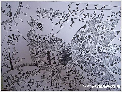 儿童线描画其主要特点就是具有一定的写实性和较强的装饰性,与黑白装饰画有相似之处,但又有明显区别。就造型语言来说,儿童线描画以线为主,点、面为辅,而黑白装饰画是点、线、面的综合应用。