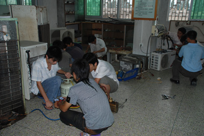 学习内容:直流电路、电磁与电磁感应、单相、三相交流电路、发电配电电路、电力变压器、低压、配电装置、电动控制线路,学习接触器、继电器、互感器、空气开关、漏电开关、单相、三相电度表、钳表、摇表等的原理和使用,变压器、调压器、稳压器、逆变器、风扇、洗衣机、单相、三相、异步电动机、电动工具、同步发电机的原理和维修及绕制技术;国内外雪柜、电冰箱、空调器(包括窗式、分体壁挂式、柜式、吸顶式等)工作原理及维修技术;冰箱、空调机抽真空、测压力、检漏、加雪种、焊接管路等技术和中央空调的原理及维修方法。