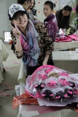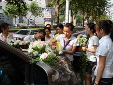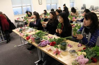 想用鲜花点缀浪漫家居吗?有了好看的花瓶,当然也要有好看的花来配,这样你就要可以学会插花哦!花之舞花艺培训教你一些简单的家居插花方法。 插花的选材与保养 建议家庭插花不必选购奇花异草或高档花卉,可选择经济实惠、时令性较强的常用花卉即可,因价格便宜,质量好而且挑选余地大,同样起到美化家居的艺术效果。 凡是从花店或花市买回来的鲜花,花苞的开放程度达三四成为最佳,但不能马上插花,一定要进行适当的处理和水养,才能延长鲜切花的使用寿命。 因鲜切花脱离母体后失去了株体对它的养料供应,加上长途运输和脱水等原因,使鲜花的花序和叶片出现萎蔫现象。所以必须将采购的鲜切花的茎叶浸泡在盛满水的容器内,把花头露出水面,在阴凉处放置半小时到1小时后,即恢复到原来新鲜状态。同时将腐烂发黄的叶片和茎干摘除,保持新鲜度,即可用作插花。 插花的方法 家庭插花除了带有随意性和个性以外,也需适当掌握一些基本的插花方法。首先来看造型,大致可分为对称造型和不对称造型两种,对称造型在西方式插花中运用较多,它的特点是对称、统一、排列均衡。常见造型有半球形、扇形、塔形等,应用在餐桌台花和新娘捧花等方面。 另一种为不对称造型,它是一种不等边三角形造型,充分展示线条美,其特点是不对称均衡,它是东方式插花最基本的手法和原则。一般在插花前先大致构思出一个图形来,然后挑选3支主花(花朵、枝叶均可),按一定比例关系(黄金分割原理)剪切后插入盛器,勾勒出不等边三角形的框架,接着在中心部位插入焦点花,然后在框架内添加枝叶、花朵作陪衬,最后修饰并用草叶遮掩花泥露出部分,作品就完成了。 色彩的运用是插花作品成败的重要因素。不同季节运用不同的色彩和花材。如春季,可选色彩鲜艳、明快的花卉,给人以生机盎然的气氛;夏季,宜以清洁、素雅的花卉;秋季,是丰收季节,插花体现满目金黄硕果累累,给人以兴旺发达的联想;冬季,要用色彩浓郁的花材。