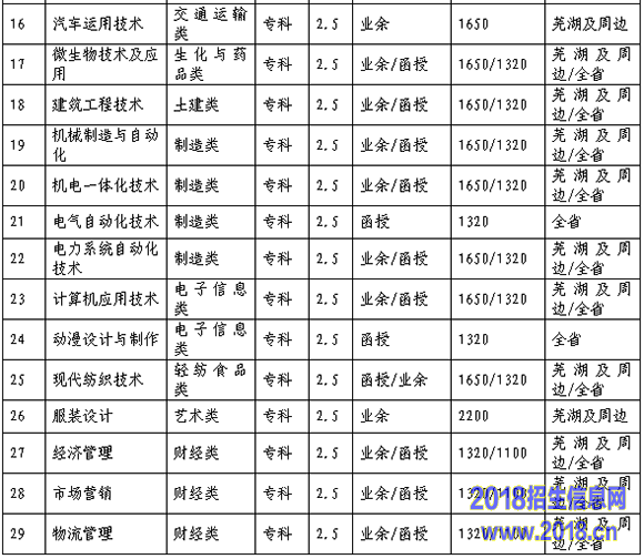 芜湖职业技术学院成人高考专科专业