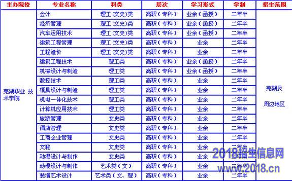【图】芜湖职业技术学院成人高考专科专业